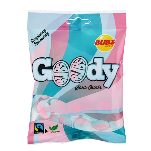 These soft and chewy BUBS Goody candies blend bold blueberry and raspberry flavors in every bite. Vegan, gluten-free, and made in Sweden, this 90g bag is full of that juicy berry taste you’ll keep coming back for.